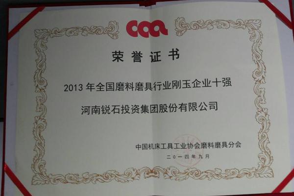 热烈祝贺河南锐石集团荣获2013年全国刚玉企业十强